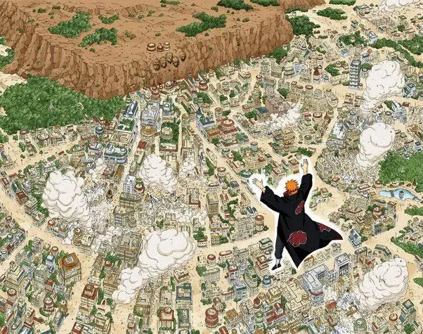 Quando Pain — ou melhor, os seis corpos controlados por Nagato — invade Konoha, a destruição é absoluta. A vila que Naruto jurou proteger é literalmente apagada do mapa em questão de minutos. O Shinra Tensei que destrói a Vila da Folha não é apenas um ataque devastador; é o catalisador que força Naruto a crescer instantaneamente.